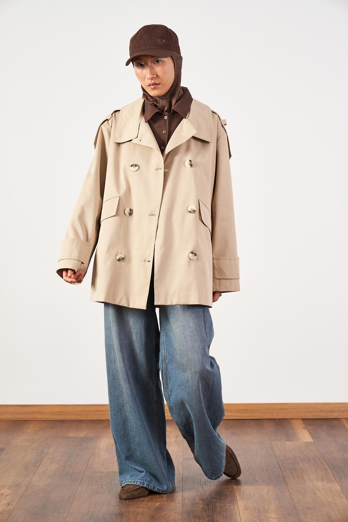 Kadın Kısa Oversize Trençkot – Kum Bej, sade şıklığı ve modern kesimiyle sezonun favori parçalarından biri. Geniş kalıp tasarımı sayesinde rahat hareket imkânı sunar; aynı zamanda şık duruşuyla her kombine kolayca uyum sağlar.