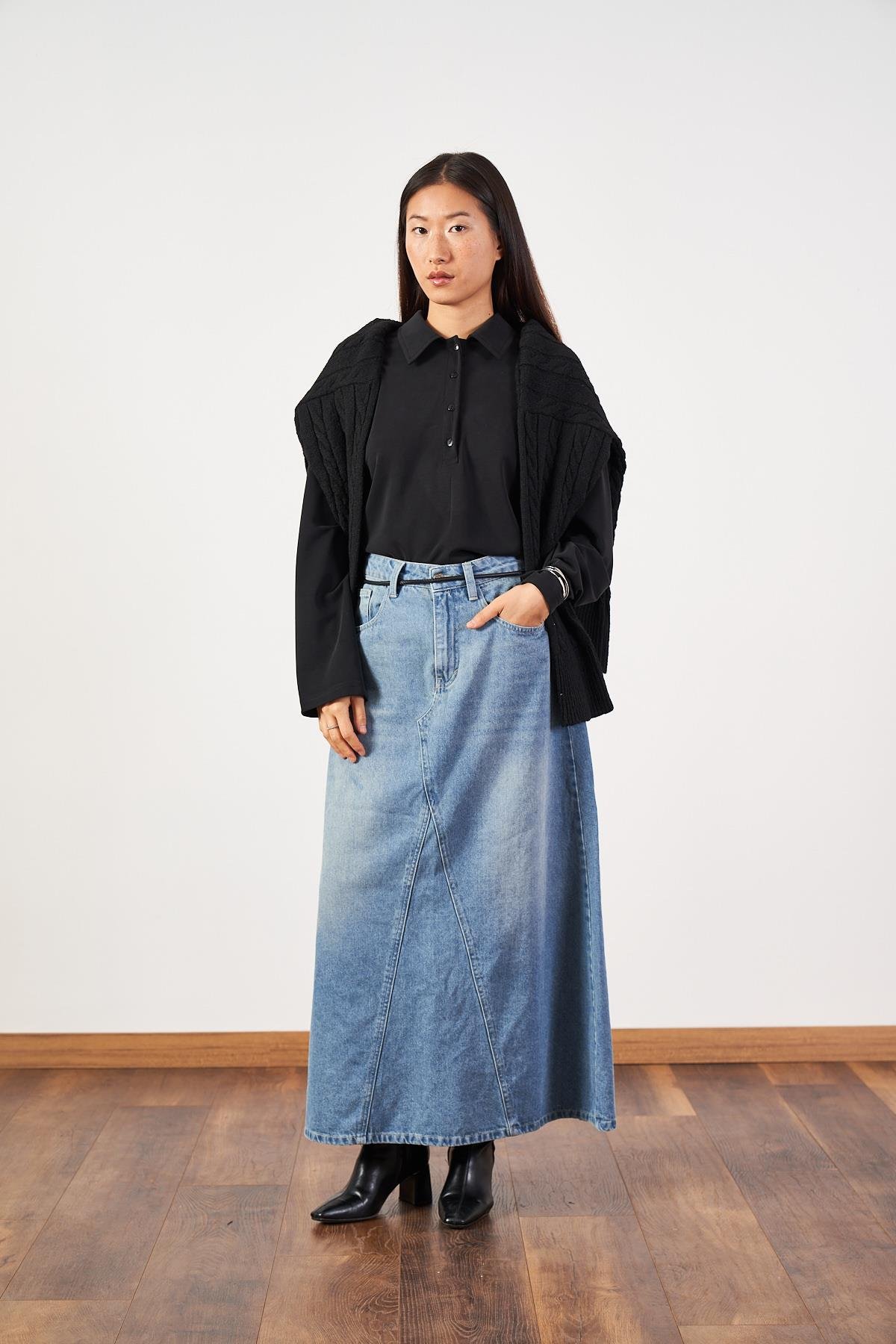 Günlük şıklığı zarafetle buluşturan bu uzun denim etek, sade tasarımı ve konforlu yapısıyla tesettür giyim tarzının vazgeçilmez parçası olmaya aday. Her mevsim giyilebilen dayanıklı denim kumaşı sayesinde hem klasik hem modern kombinlerle kolayca uyum sağlar. Uzun boy kesimi, vücut hatlarını belli etmeden zarif bir görünüm sunarak tesettür stiline mükemmel şekilde uyum gösterir.