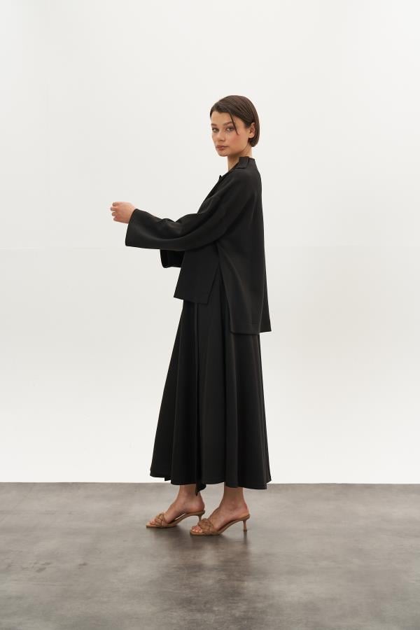 Kruvaze Modal Etek Ceket Alt Üst Takım Siyah