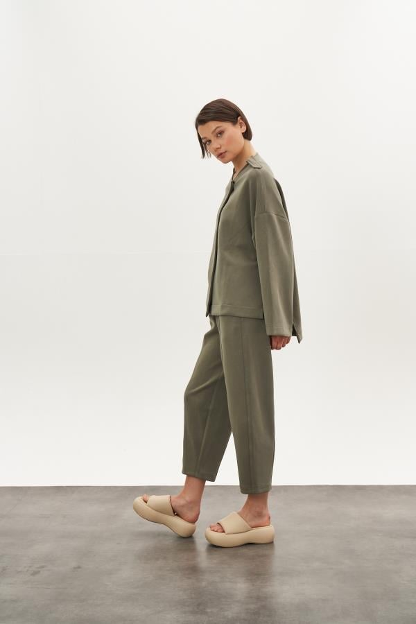 Önü Dikişli Modal Pantolon Ceket Alt Üst Takım Haki
