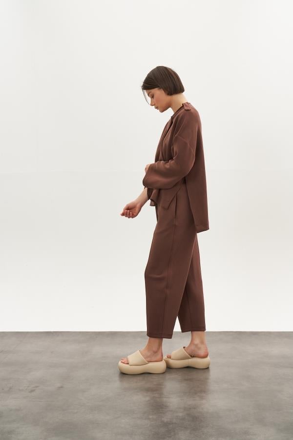 Önü Dikişli Modal Pantolon Ceket Alt Üst Takım Kahve