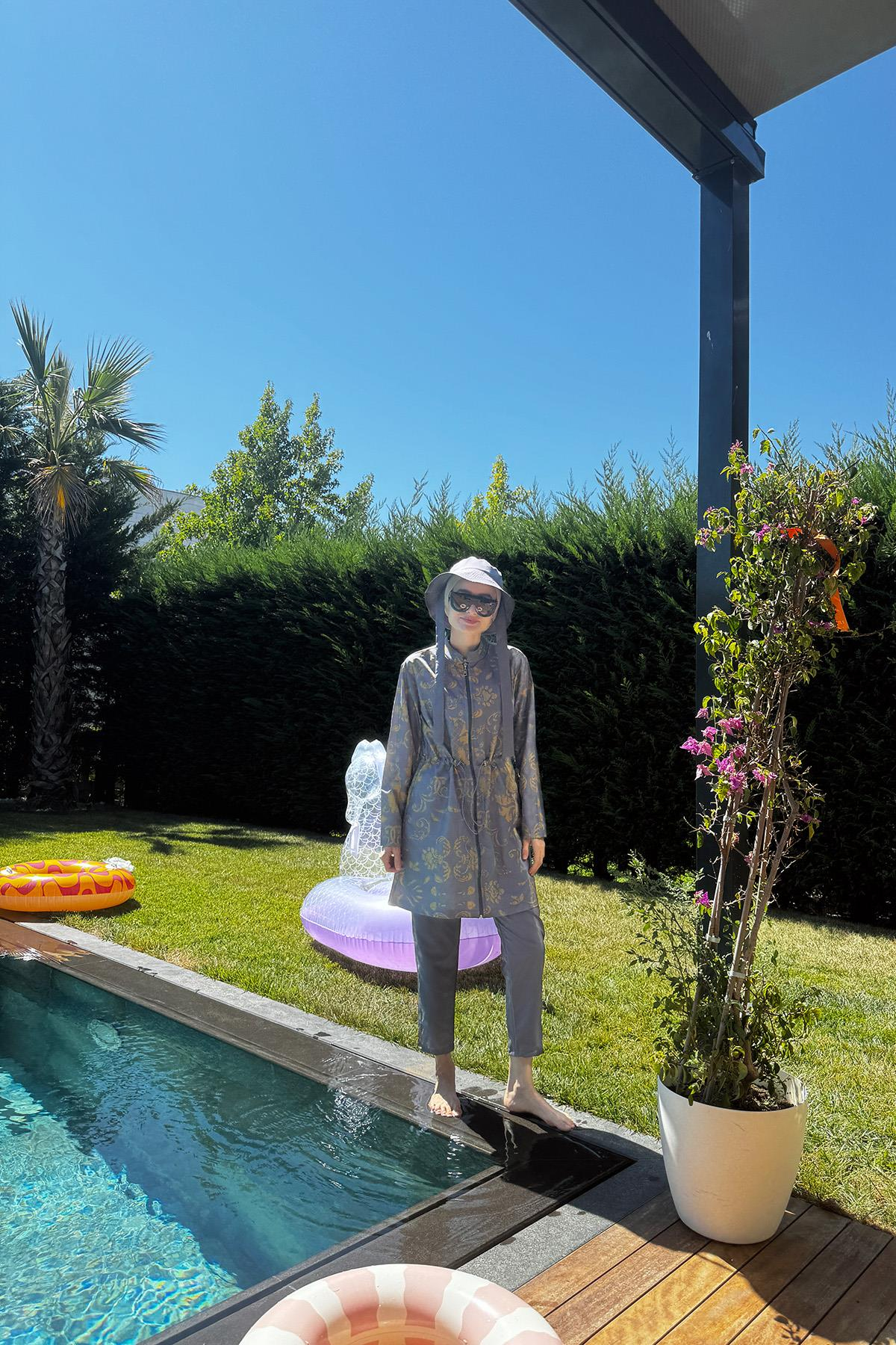 Stoperli Tesettür Mayo Çini Desen Gri